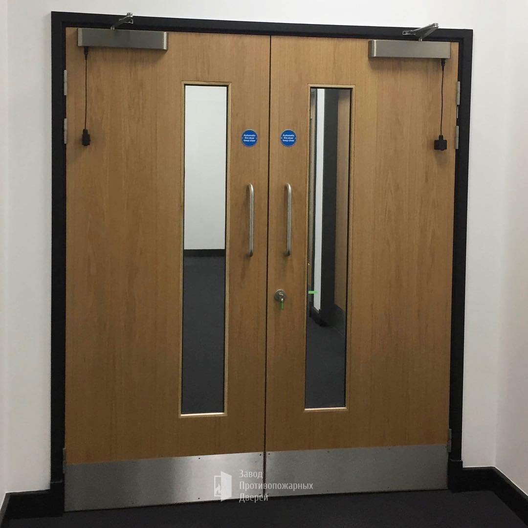 Такие конструкции оборудуются особым огнеупорным герметиком и изоляцией от дыма и гари, фурнитурой, блокировочными механизмами и так далее. Полученная конструкция называется дверным блоком, а цифры на нем означают время противостояния огню.