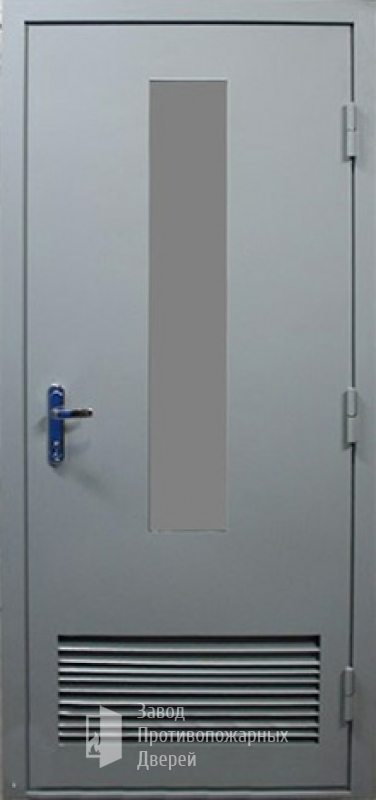 Модель Противопожарная Однопольная дверь с круглым стеклом ДПМ-01-EIW60 с решеткой