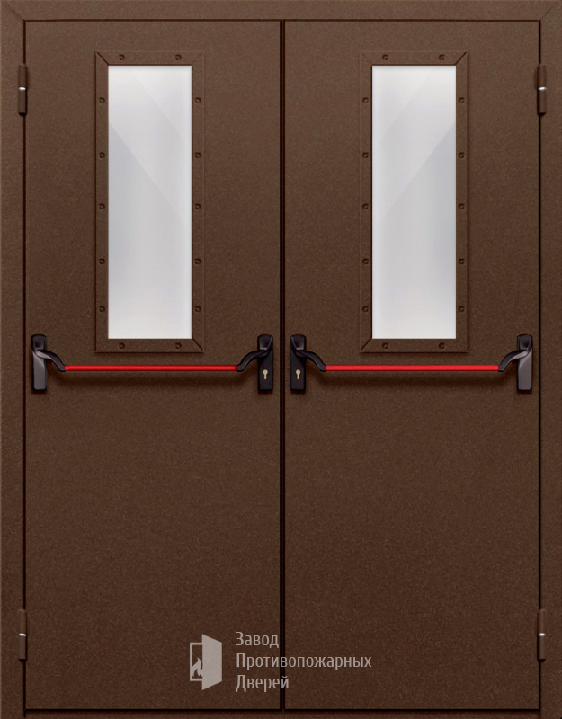Маркировка Противопожарная Двупольная дверь с прямоугольным стеклом ДПМ-02-EIW60 с антипаникой