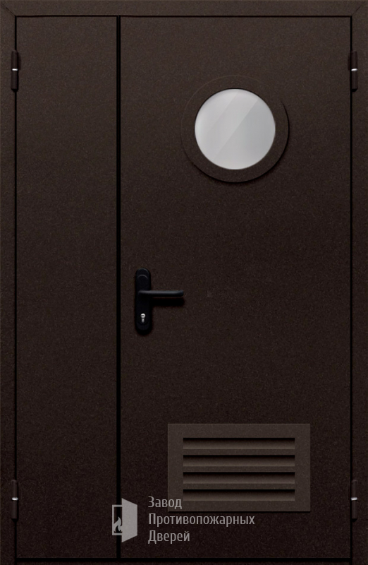 Маркировка Противопожарная Полуторная дверь с круглым стеклом ДПМ-02-EIW130 с решеткой