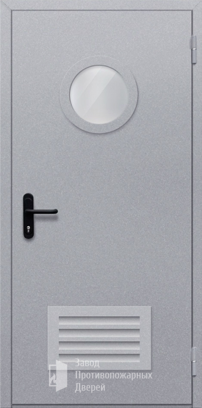 Противопожарная Однопольная дверь с круглым стеклом ДПМ-01-EIW60 с решеткой |