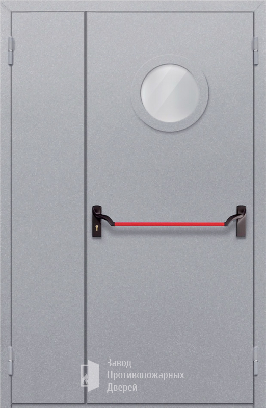 Маркировка Противопожарная Полуторная дверь с круглым стеклом ДПМ-02-EIW60 с антипаникой